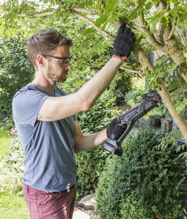 Damit Sie die Materialien auch bei weniger guten Lichtverhältnissen sauber zuschneiden, hat der Hersteller für Sie eine praktische LED-Arbeitsleuchte in das Gerät eingebaut. Da sich der Astbügel problemlos entfernen lässt, arbeiten Sie stets einfach, wenn Sie Gegenstände mit einem Durchmesser von bis zu 15 cm zersägen. Mit dem montierten Bügel ist dafür garantiert, dass Sie nicht abrutschen. Wenn Sie mit einem Werkzeug sowohl Metall, Kunststoff als auch die Äste von Sträuchern und Büschen problemlos schneiden möchten, dann bestellen Sie die Akku-Säbelsäge PS 1815 der Marke AL-KO und lassen sich das Set bequem nach Hause liefern.
