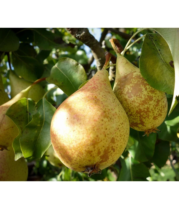 Es handelt sich um eine aus England stammende Birnensorte die regelmäßige, hohe Erträge bringt. Die Früchte sind mittelgroß und eher schlank mit einem langen Hals. Sie überzeugen mit ihrem lachsfarbenen, sehr saftigen Fruchtfleisch, welches ein ausgesprochen gutes Verhältnis zwischen Zucker und Säure besitzt. Die Schale ist fest und etwas rau. Sie besitzt auf ihrer gelb-grünen Farbe braune Rostflecken. Ihre Erntezeit ist ab Mitte September, sie kann dann im Naturlager bis November aufbewahrt werden. Gekühlt ist sie allerdings länger haltbar. Die ‚Conference‘ ist eine der am meisten angebauten Sorten in Deutschland und eignet sich durch ihren tollen Geschmack zum Rohverzehr und zum Verarbeiten, zum Beispiel als Kuchenbelag. Diese Birne eignet sich hervorragend als Befruchter für alle mittelfrüh blühenden Birnbäume.
