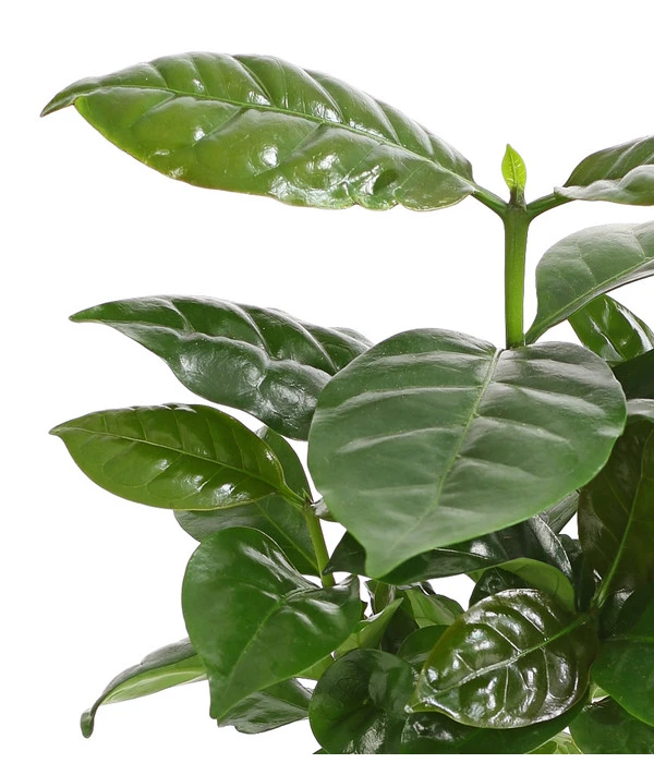 Im Durchschnitt konsumiert jeder Mensch ca. 150 Liter Kaffee im Jahr. Somit gehört Kaffee, neben Bier und Wasser, zu den beliebtesten Getränken in Deutschland. Doch nicht jeder passionierte Kaffeetrinker hat schon einmal eine Kaffeepflanze gesehen und weiß deshalb auch nicht, wie attraktiv diese Kulturpflanze wirkt. Sie beeindruckt durch ihr dichtes, immergrünes Blattwerk, das wir in die passende Keramik gesteckt haben. Denn wer sich für den Kauf einer Kaffeepflanze entscheidet, erhält die Kaffeetasse mit dazu. Der Kaffeestrauch wächst zunächst einstämmig, kann aber mit zunehmendem Alter zu einem prächtigen, dichten Busch von bis zu zwei Metern Höhe heranwachsen. Und präsentiert sich die Pflanze in den ersten Jahren nur im Schmuck ihrer grünen Blätter, so bilden sich nach einigen Jahren weiße, sehr wohlriechende Blüten, die Ihre Wohnräume mit exotischem Duft erfüllen. In der Natur, beziehungsweise unter den erforderlichen klimatischen Bedingungen, entstehen aus den Blüten die Kaffeefrüchte, die erst grün sind und sich später leuchtend rot färben.