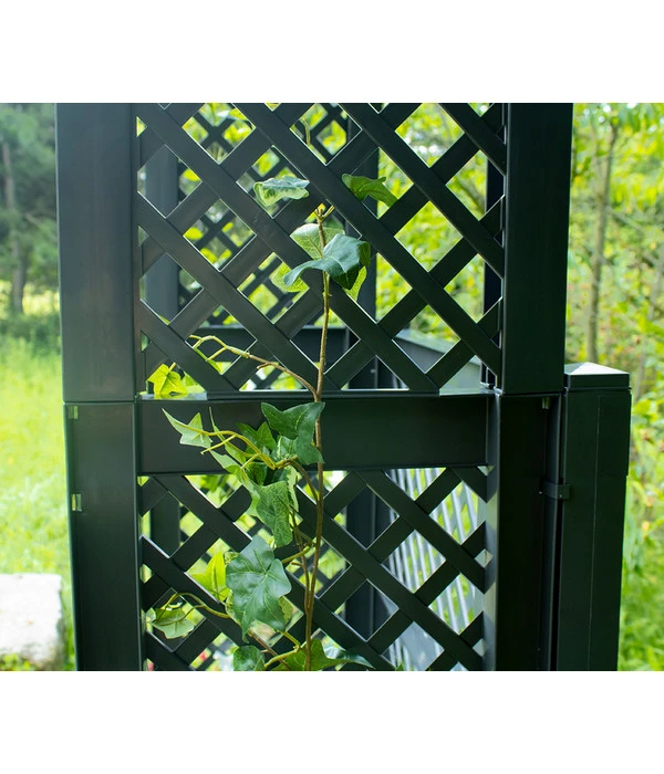 Lassen Sie sich von Ihrem eigenen Garten verzaubern und beginnen Sie zu träumen. Mit der KHW Kunststoff-Gartenbank Amsterdam haben Sie den idealen Ort um die Gedanken schweifen zu lassen und sich dem Moment hinzugeben. Dieser formschöne, nostalgische 2-Sitzer von KHW-Geschwenda verkörpert ein sehr klassisches Design und eine kindliche Verspieltheit. Die schicke Sitzgelegenheit für Ihren Garten verfügt über einen Rosenbogen und zwei seitliche Pflanzkästen, in denen Sie Ihre Lieblingsgewächse gedeihen lassen können. Die KHW Kunststoff-Gartenbank Amsterdam ist aufgrund ihrer hochwertigen Verarbeitung nicht nur stabil und wetterfest, sie ist auch noch farbecht und leicht zu reinigen. Die Abmessungen für dieses schöne Gartenmobiliar betragen B 174 x T 49 x H 207 cm. Sie erhalten die KHW Kunststoff-Gartenbank Amsterdam in Einzelteilen geliefert, jedoch ist eine einfache Montage ohne zusätzliches Werkzeug möglich.