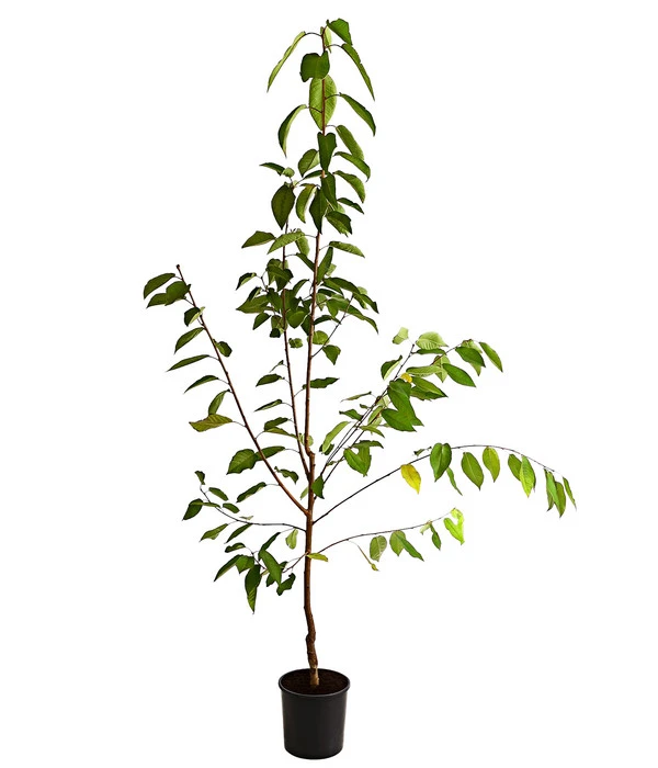 Die Süßkirsche ‚Regina‘ ist eine aromatische Knorpelkirsche, welche frühe und reiche Erträge mit sich bringt. Die Pflanze überzeugt durch ihr Aussehen und durch ihre leckeren Früchte. Zwischen April und Mai zeigen sich die kleinen, weißen Blüten, welche ein malerisches Bild abgeben und einen angenehmen Duft im Garten verteilen. Die Früchte überzeugen durch ihre Platz- und Regenfestigkeit. Sie sind groß, kirschrot glänzend und herzförmig. Sie sind aromatisch süß mit einer spritzigen Säurenote. Das Fruchtfleisch ist mäßig saftig und sehr knackig. Erntezeit der ‚Regina‘ ist von Juli bis August. Im Herbst verfärben sich die Blätter orange und gelb, wodurch wieder der Zierwert gesteigert wird. Da es sich um eine selbststerile Pflanze handelt, ist eine Befruchtersorte nötig. Hierzu sollte ein Kirschbaum im Umfeld von bis zu 300 Metern in der Nähe stehen, hören Sie sich doch mal bei Ihren Nachbarn um. Sehr gut als Befruchter geeignet sind die Sorten: ‚Bianca‘, ‚Anabella‘ oder ‚Alma‘.